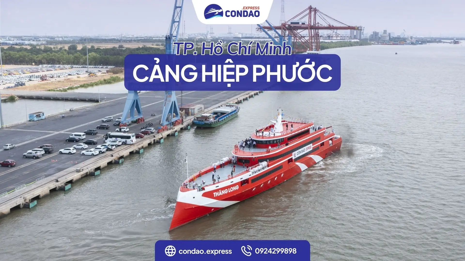 Cảng Hiệp Phước (tên chính thức: Cảng Sài Gòn – Hiệp Phước) là điểm khởi hành tàu cao tốc Thăng Long đi Côn Đảo, thuận tiện cho du khách từ TP.HCM. Cảng nằm trên sông Soài Rạp tại Khu công nghiệp Hiệp Phước, cách trung tâm TP.HCM 23km, giúp quý khách tiết kiệm thời gian di chuyển so với đi Vũng Tàu. Tàu Thăng Long chạy 3 chuyến mỗi tuần vào thứ 3, 5, 7 với thời gian hành trình 5h, giá vé từ 880.000đ. Quý khách có thể đặt vé online tại Côn Đảo Express, thanh toán an toàn, xuất vé tự động 24/7.