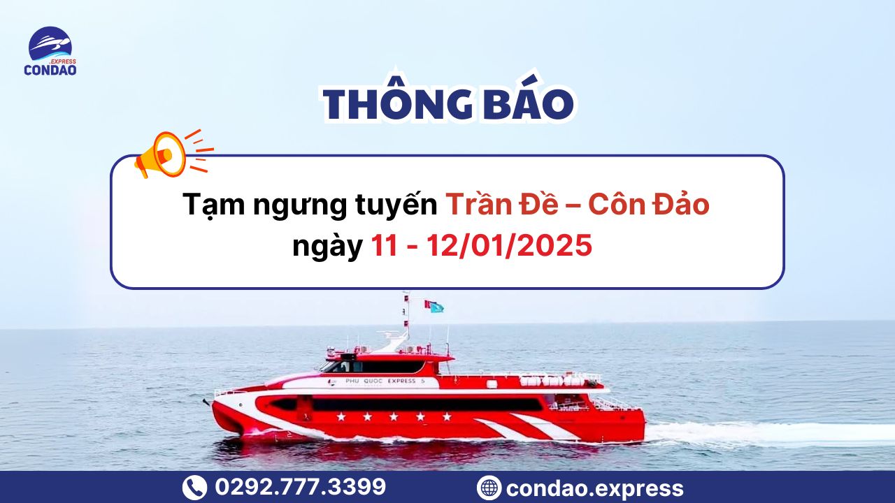 ![[Thông báo] Tạm ngừng tàu Trần Đề Côn Đảo ngày 11-12/01/2025 do thời tiết xấu](https://cdn.condao.express/wp-content/uploads/tam-ngung-tuyen-tran-de-con-dao-ngay-11-12-thang-01.jpg)